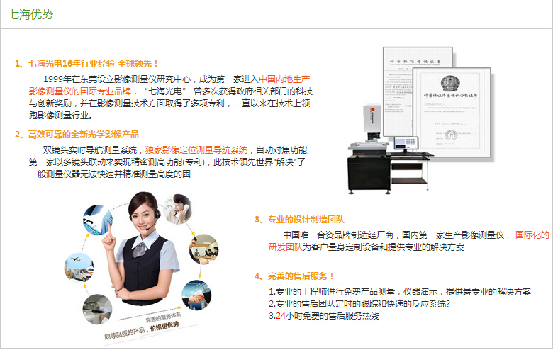 1999年在東莞設立影像測量儀研究中心,成為*家進入中國內地生產影像測量儀的國際專業品牌,“七海光電”曾多次獲得政府相關部門的科技與創新獎勵,并在影像測量技術方面取得了多項專利,一直以來在技術上領跑影像測量行業。其產品廣泛應用在通信、電子、汽車、塑膠、機械加工等行業,并且能夠根據用戶的特定需求,快速提供用戶定制化的產品和解決方案,成為中國領先的影像測量機供應商之一,不斷帶領中國影像測量行業屢創新高。